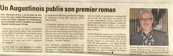 Le journal local de Saint-Augustin a publié un excellent article à propos de Mauvais Rêves